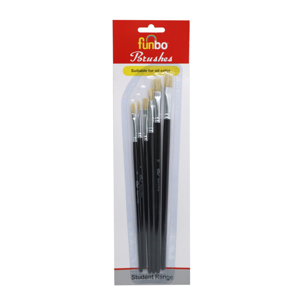 Funbo Multi Purpose Long Flat Oil Colors Brush Set of 6 Pieces Number 2,4,6,8,12,14